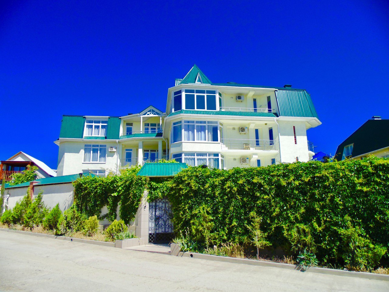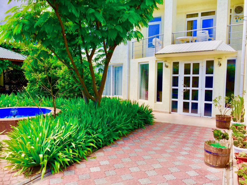 Поездом до ж/д вокзала г. Феодосии, далее 600 м до остановки «Магазин Электротовары», далее на автобусе №4Д до остановки «Автовокзал», далее 245 м до остановки «Автостанция Феодосия», далее на маршрутном такси «Симферополь – Феодосия» до остановки «Автостанция Грушевка», далее на маршрутном такси «Симферополь – Судак» до остановки «РТС», далее на автобусе №6 до остановки «Городской совет», далее 460 м до гостевого дома.